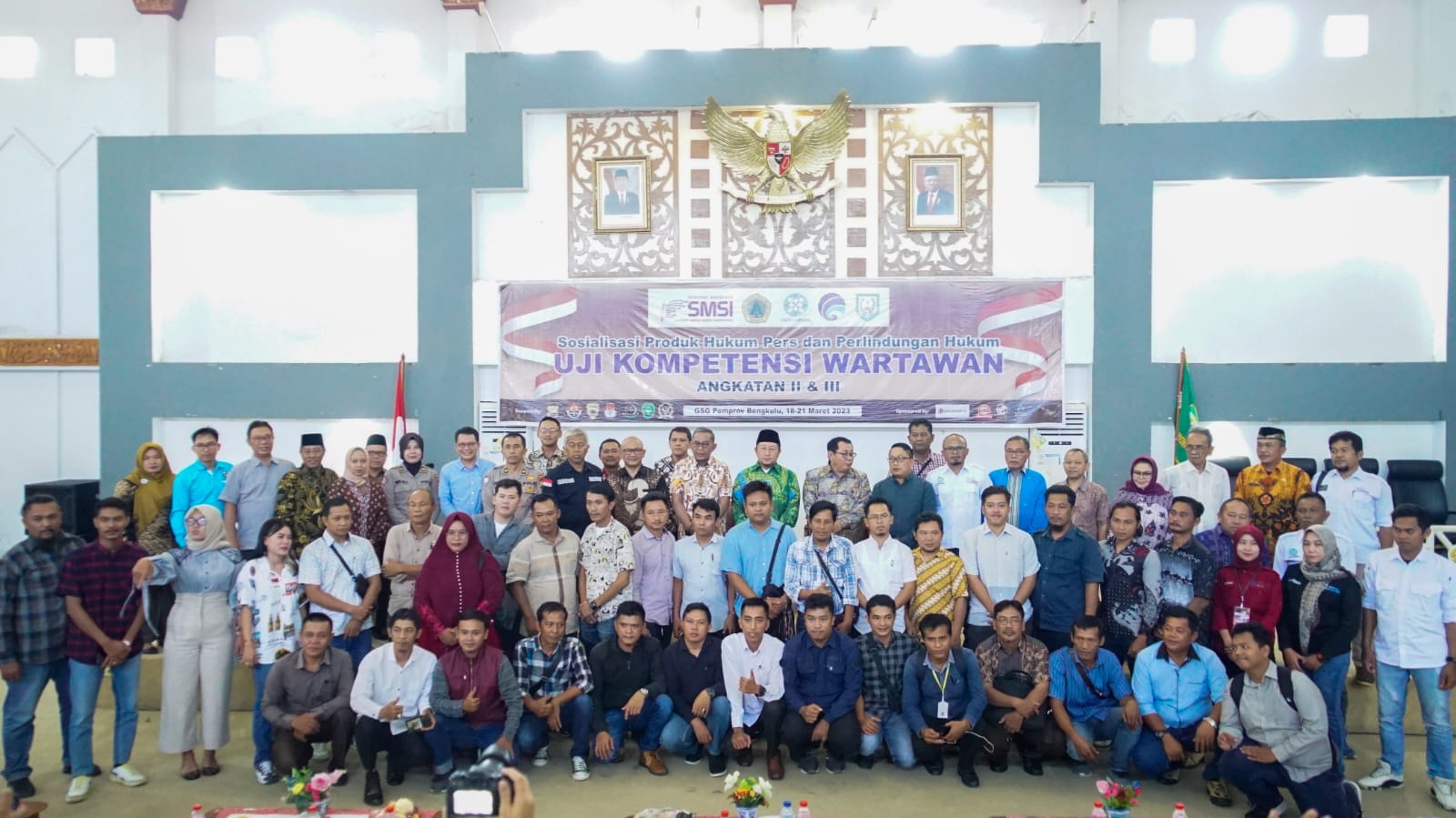 Selain itu, hadir juga Ketua Umum SMSI Pusat Firdaus dan Sekjen M Natsir yang juga penguji UKW, Dekan Fakultas Ilmu Komunikasi Univ. Prof. Dr. Moestopo (Beragama) HM. Saefullah dan tim, serta pengurus SMSI Bengkulu, kabupaten dan kota.