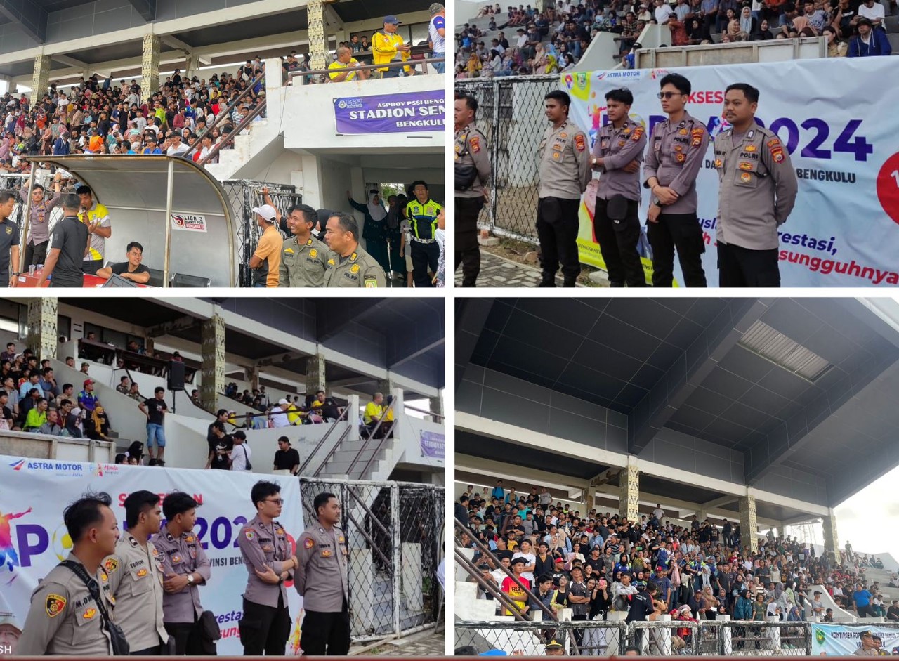 Bengkulu - Guna mengantisipasi gangguan kamtibmas di seputaran lokasi Personel Polresta dan Polsek jajaran melaksanakan pengamanan secara terbuka maupun tertutup pada saat berlangsungnya Final Pekan Olahraga Pelajar Daerah Tahun 2024 Cabang olahraga Sepak Bola, Jumat (17/05/2024).