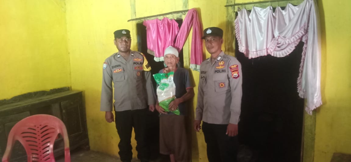 Berbagi Kepada Warga Kurang Mampu, Bhabinkamtibmas Serahkan Sembako kepada Warga Desa Tebing Rambutan