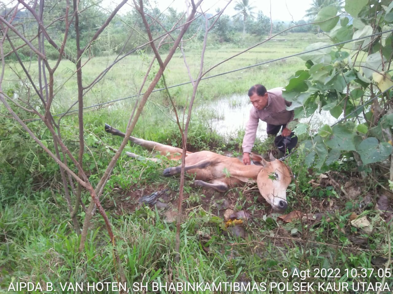 Dalam kesempatan ini, Aipda B. Van Hoten SH, yang bertugas sebagai Anggota Bhabinkamtibmas Polsek Kaur Utara Polres Kaur ini mengingatkan warga untuk segera melapor secara berjenjang hingga dinas terkait apabila menemukan gejala PMK.