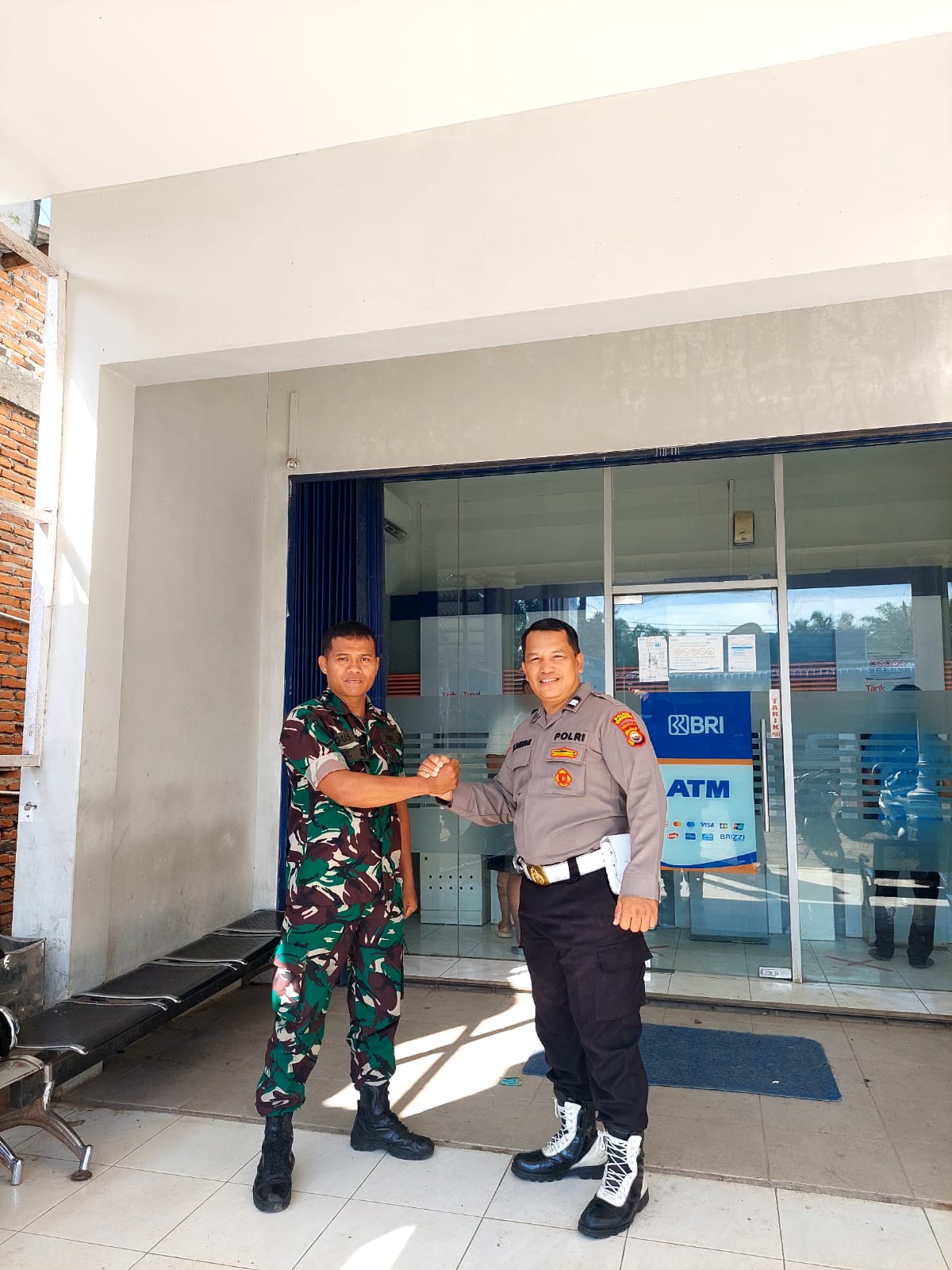 Mukomuko - Sebagai bentuk sinergitas TNI-Polri dalam rangka menjaga keamanan dan ketertiban masyarakat Koramil 428/01 Mukomuko dengan Polsek Penarik Raya melakukan Patroli bersama di obyek vital BRI Unit Penarik Desa Penarik Kecamatan Penarik Kabupaten Mukomuko, Sabtu (13/05/2023).