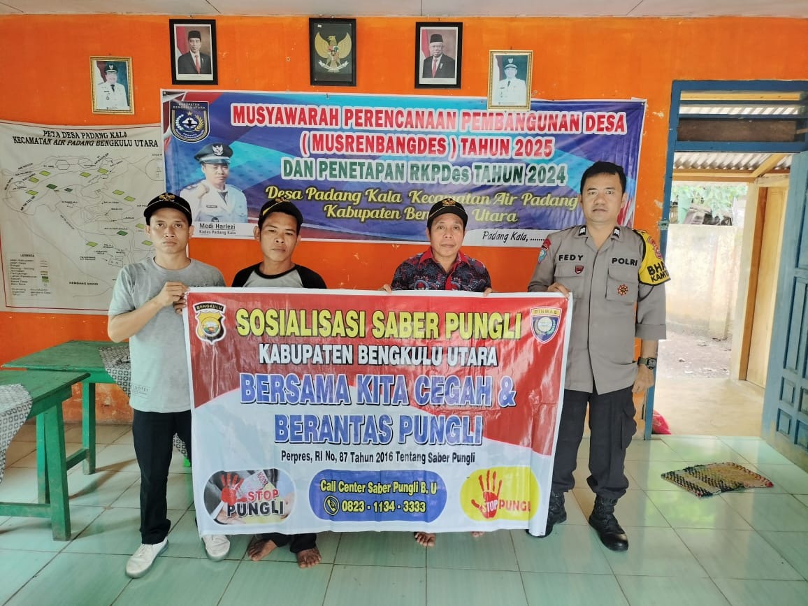 Sosialisasi Saber Pungli yang disampaikan oleh Bhabinkamtibmas Aiptu Fedi Aften ini dihadiri oleh perangkat pemerintah desa Padang Kala kecamatan Lais kabupaten Bengkulu Utara.