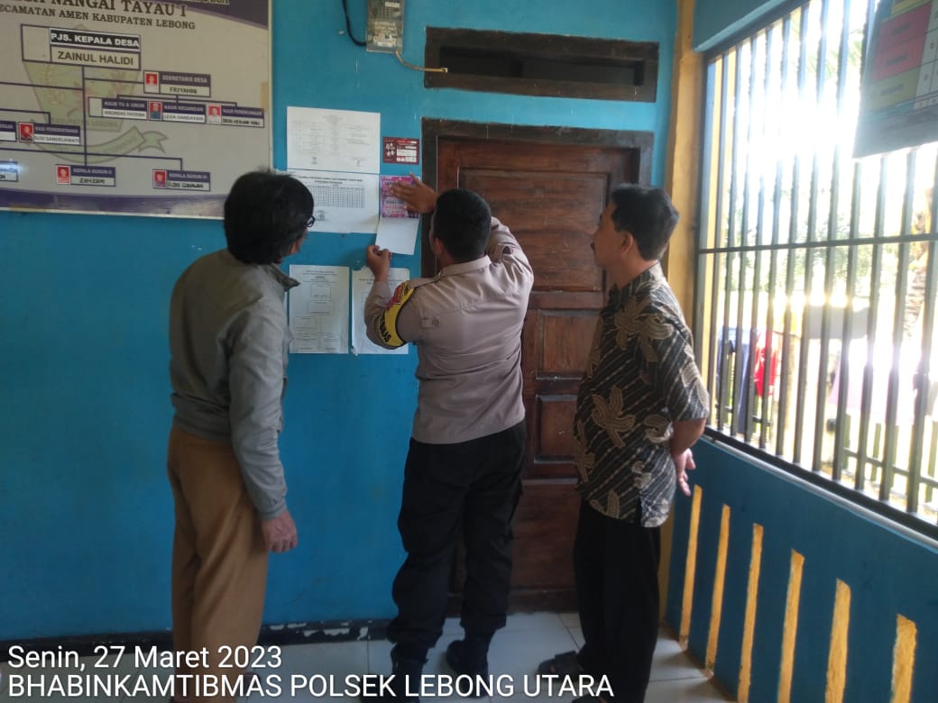 Bhabinkamtbmas Polsek Lebong Utara Pasang Stiker "Hotline Dumas Presisi"