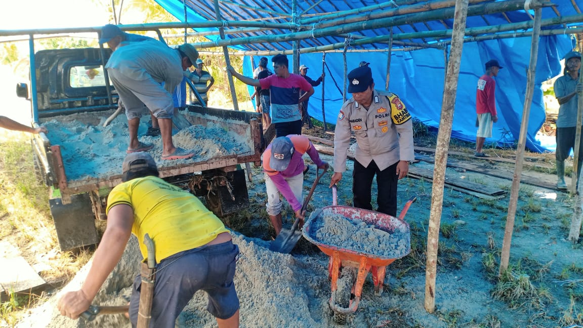 Bengkulu Utara – Sebagai kepedulian terhadap salah satu warga binaan yang akan melangsungkan pernikahan, Bhabinkamtibmas Polsek Enggano, bersama masyarakat bergotong royong membantu menyiapkan acara pernikahan salah satu warganya, Sabtu (01/7/2023).