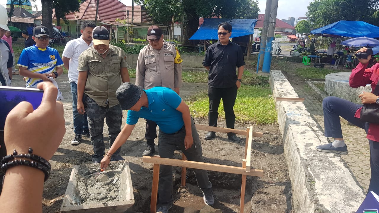 Rejang Lebong - Bhabinkamtibmas Polsek Curup Polres Rejang Lebong Polda Bengkulu, melaksanakan kegiatan monitoring pelaksanaan Titik Nol pembangunan fisik sumber Dana Desa TA 2023 di lapangan Setia Negara Curup di kelurahan Pasar Baru kecamatan Curup kabupaten Rejang Lebong, Selasa (18/04/2023).