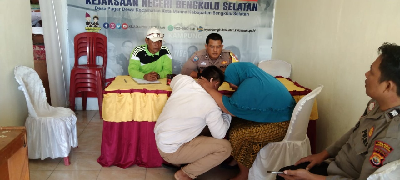 Bengkulu Selatan – Bahbinkamtibmas Polsek Kota Manna Polres Bengkulu Selatan Polda Bengkulu, Aipda Istin Parizon, S.H., melaksanakan mediasi dugaan Tindak Pidana pengrusakan parabot rumah tangga yang dilakukan olah anak kandung korban di Desa Pagar Dewa Kecamatan Kota Manna Kabupaten Bengkulu Selatan, (21/09/2023) Jam 09.00 WIB.