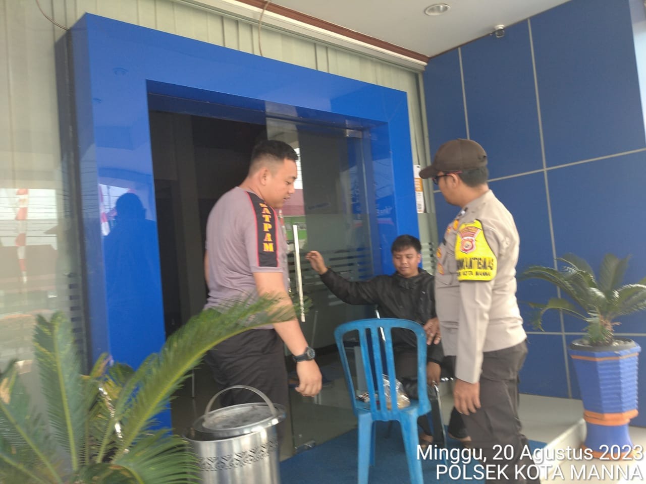Bengkulu Selatan – Dalam rangka antisipasi tindak kejahatan dan kriminalitas, Bhabinkamtibmas Polsek Kota Manna Aipda Pujiono bersama Aipda Istin Farizon, S.H., dan Briptu A.Rozie Arbasera, S.H.,         melaksanakan sambang dialogis kepada security Bank BRI Cabang Manna      Bengkulu Selatan, Minggu (20/08/23).
