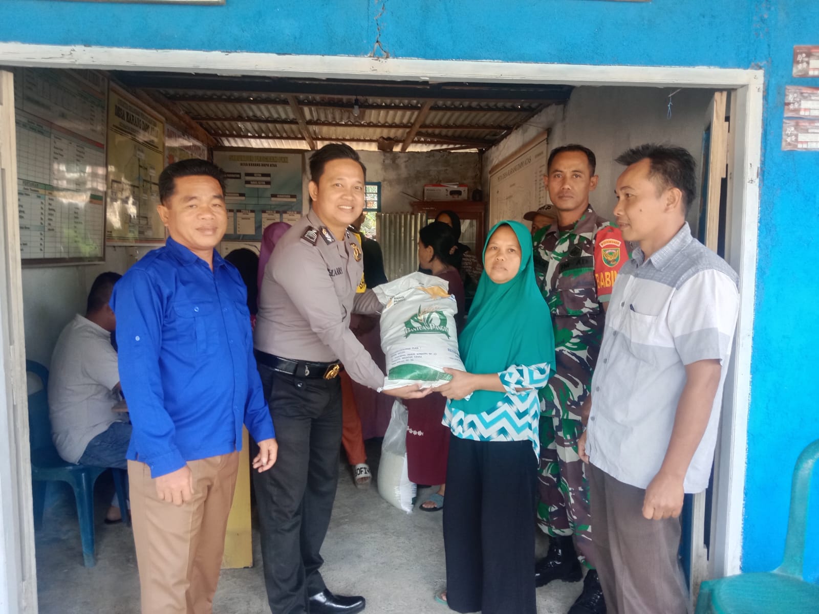 Lebong - Brigpol Hari Sutami, yang merupakan Bhabinkamtibmas Polsek Lebong Atas, Polres Lebong Polda Bengkulu, menghadiri kegiatan pembagian beras dari Badan Pangan Nasional melalui Perum Bulog dengan berat perkarung 10 Kg.