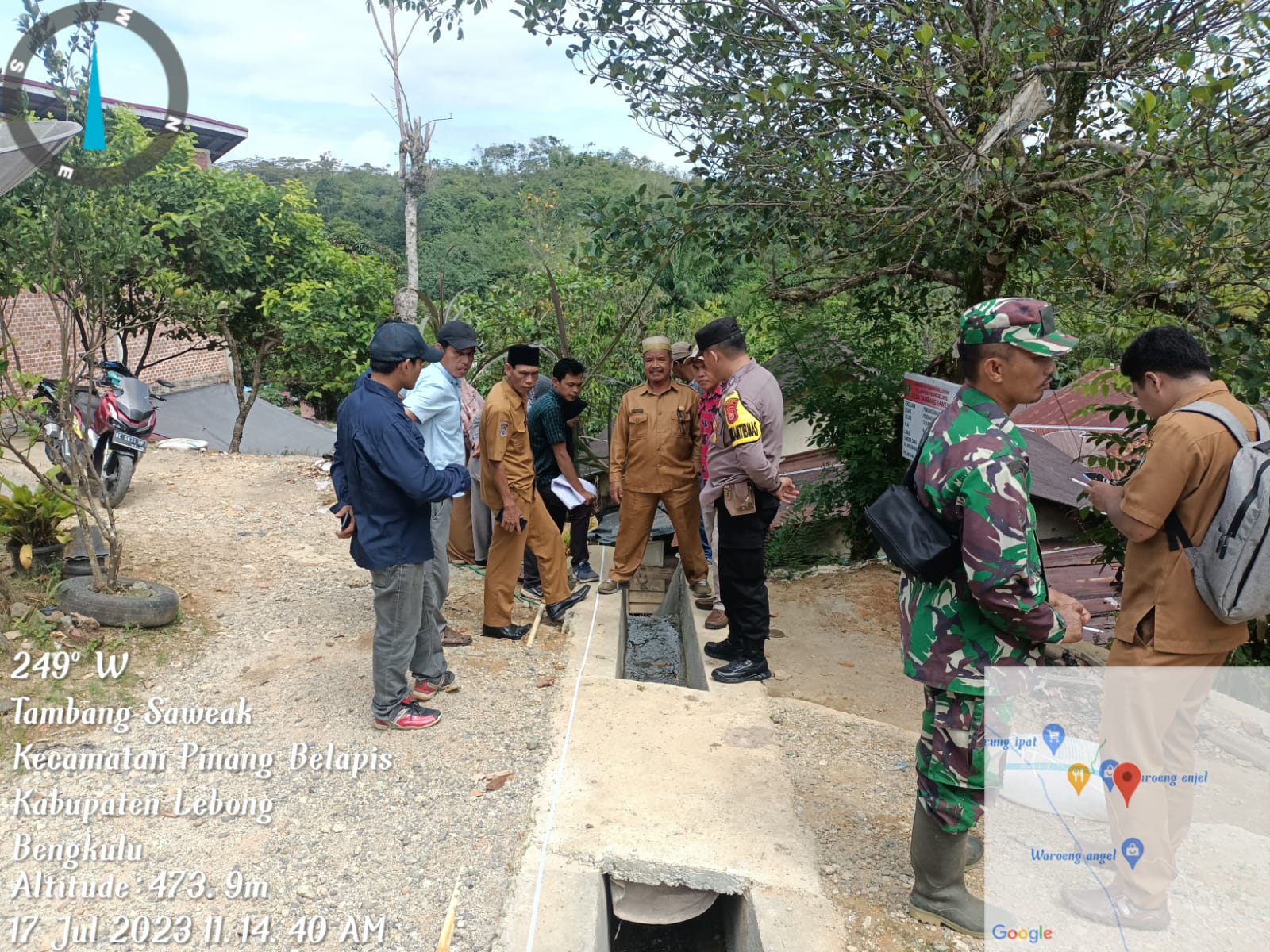 Lebong - Bentuk sinergi dan mendukung program di desa binannya, Bhabinkamtibmas Polsek Lebong Utara Polres Lebong Polda Bengkulu, Brigpol Mezen Prabudio, menghadiri kegiatan Monitoring dan Evaluasi (Monev) Pembangunan Desa Tahun Anggaran 2023, di Desa Tambang Saweak Kecamatan Pinang Belapis, Kabupaten Lebong, Senin (17/7/2023).