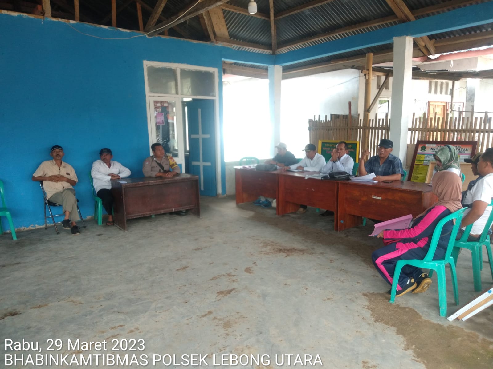 Lebong - Bhabinkamtibmas Polsek Lebong Utara Polres Lebong Polda Bengkulu Brigpol Adi Kurniawan, menghadiri kegiatan Musdessus Desa Nangai Tayau Kecamatan Amen Kabupaten Lebong, Rabu (29/3/2023).