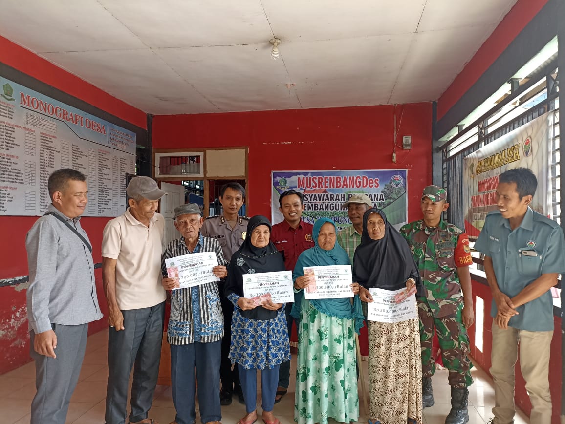Lebong - Bhabinkamtibmas Polsek Lebong Utara Polres Lebong Polda Bengkulu Briptu Nanda Gumilar, menghadiri kegiatan pembagian bantuan langsung tunai (BLT) yang bersumber dari dana desa (DD) di balai Desa Kampung Dalam Kecamatan Lebong Utara Kabupaten Lebong, Rabu (19/4/2023).