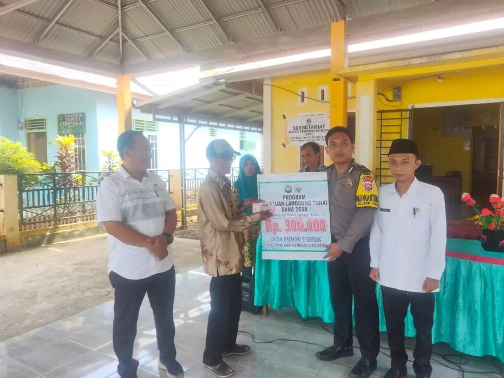 Dalam kegiatan tersebut turut hadir Kapolsek Pino diwakili Briptu Jevry, Babinsa, Kades Padang Tambak beserta perangkat, Ketua BPD beserta anggota pendamping Desa dan masyarakat yang menerima penyaluran BLT -DD Tahun anggaran 2023.