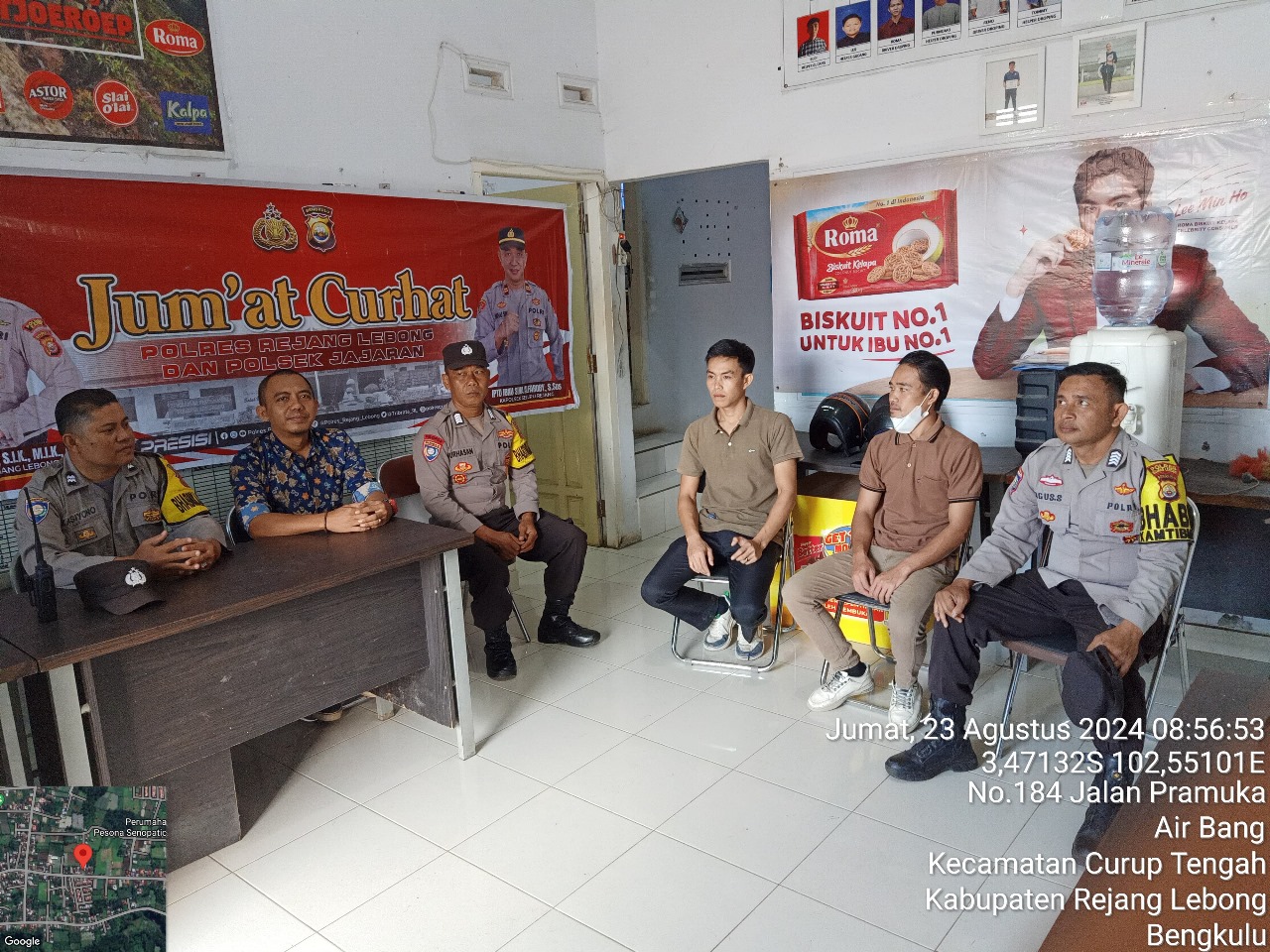 Rejang Lebong - Polsek Selupu Rejang Polres Rejang Lebong Polda Bengkulu melaksanakan kegiatan Jum'at curhat di Kelurahan Air Bang Kecamatan Curup Tengah Kab.Rejang Lebong.