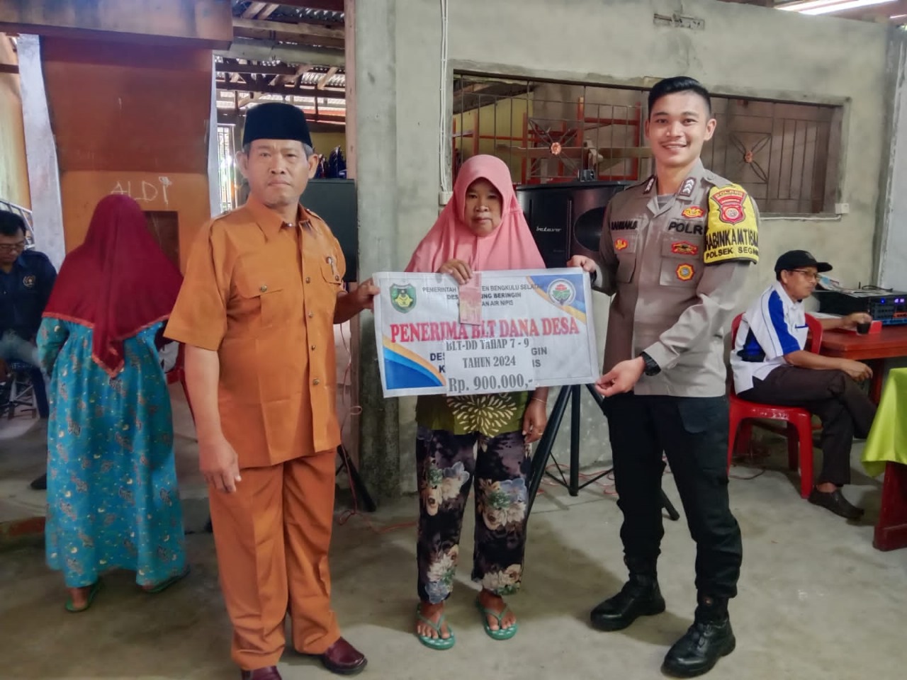 Bengkulu Selatan - Polsek Seginim Polres Bengkulu Selatan Polda Bengkulu, Bhabinkamtibmas Polsek Seginim Briptu Rahman Syahputra, SH menghadiri giat Penyaluran BLT-DD Tahap 7, 8, 9 TA. 2024 untuk penerima sebanyak 22 KK di Desa Tanjung Beringin Kecamatan Air Nipis Kabupaten Bengkulu Selatan, Rabu (11/09/24).