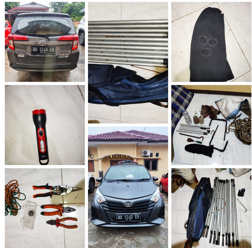 Akibat perbuatan terduga pelaku, korban mengalami kerugian sebesar Rp. 40.000.000-(Empat Puluh Juta Rupiah ). Petugas juga mengamankan barang bukti berupa 1 (Satu) unit mobil toyota Calya warna abu-abu, 15 (lima belas) meter tali tambang, 11 (Sebelas) meter besi pengait tali, 2 (Dua) Unit Besi Pengait, 1 (Satu) Unit Linggis, 1 (Satu) Unit Sekrap, 2 (Dua) Lembar Shebo, 1 (Satu) Botol berisi Air, 2 (Dua) Botol Alat Semprot berisi air, 5 (lima) Unit Setik Untuk Mencongkel sarang walet, 4 (Empat) Lembar Karung, 2 (Dua) unit tang jepit, 1 (satu) unit tang potong plat, 1 (Satu) unit tas pancing wana Navi, 1 (satu) Unit Dongkrak dan 1 (Satu) unit besi dongkrak