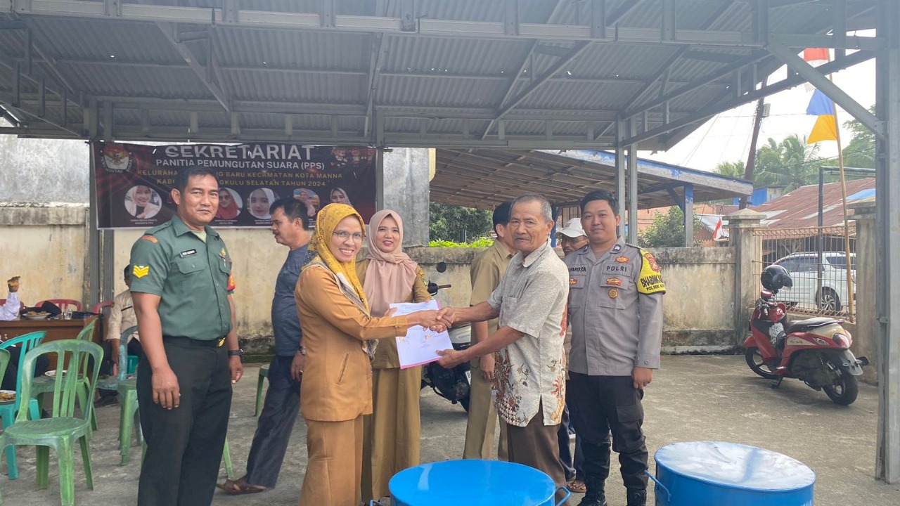 Dampingi Warga, Bhabinkamtibmas Polsek Kota Manna Hadiri Serah Terima Tong Sampah di Kantor Kelurahan Binaannya