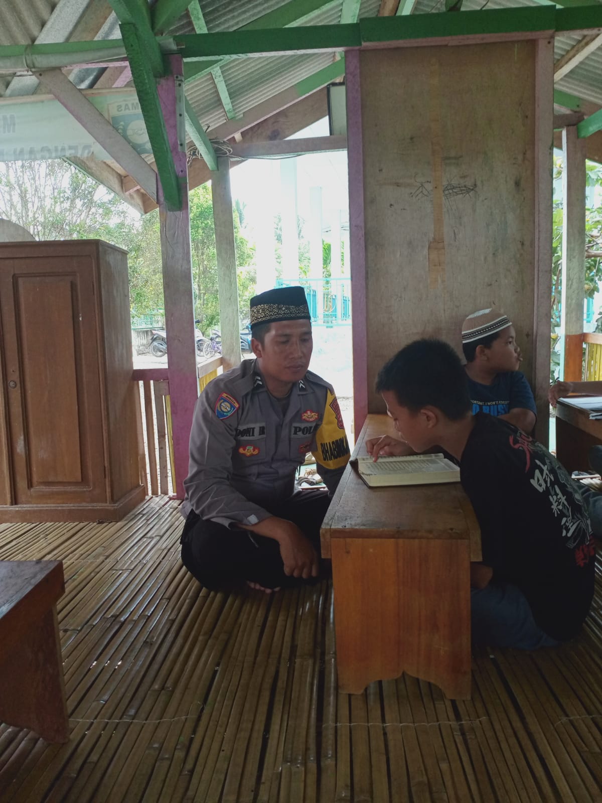 Bengkulu Selatan - Bhabinkamtibmas Polsek Manna Polres Bengkulu Selatan (BS) Polda Bengkulu Briptu Doni Irawan melaksanakan kegiatan mengajar mengaji anak-anak di pondok pengajian desa Padang Manis kecamatan Manna Bengkulu Selatan Minggu (19/02/2023).