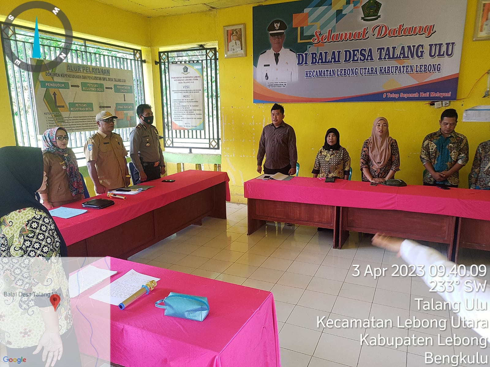 Lebong - Kapolsek Lebong Utara Polres Lebong Polda Bengkulu Iptu M Subkhan, menghadiri langsung kegiatan evaluasi dan penetapan APBDes TA 2023 Desa Talag Ulu Kecamatan Lebong Utara Kabupaten Lebong, Senin (3/4/2023) pagi.
