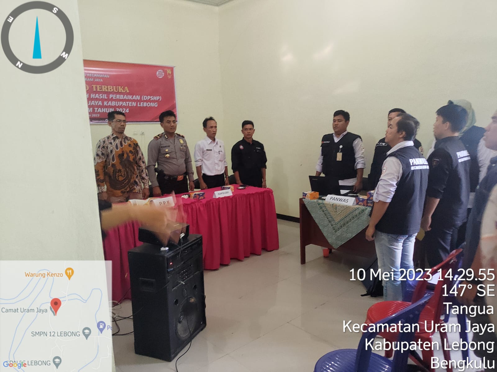 Lebong - Dukung tahapan Pemilu, Kapolres Lebong AKBP Awilzan melalui Kapolsek Lebong Utara  Iptu M Subkhan menghadiri kegiatan Rapat Pleno Terbuka Rekapitulasi Daftar Pemilih Sementara Hasil Perbaikan (DPSHP) Pemilu 2024 tingkat Kecamatan Uram di Kantor Camat Uram Jaya, Kabupaten Lebong, Rabu (10/5/2023) siang.