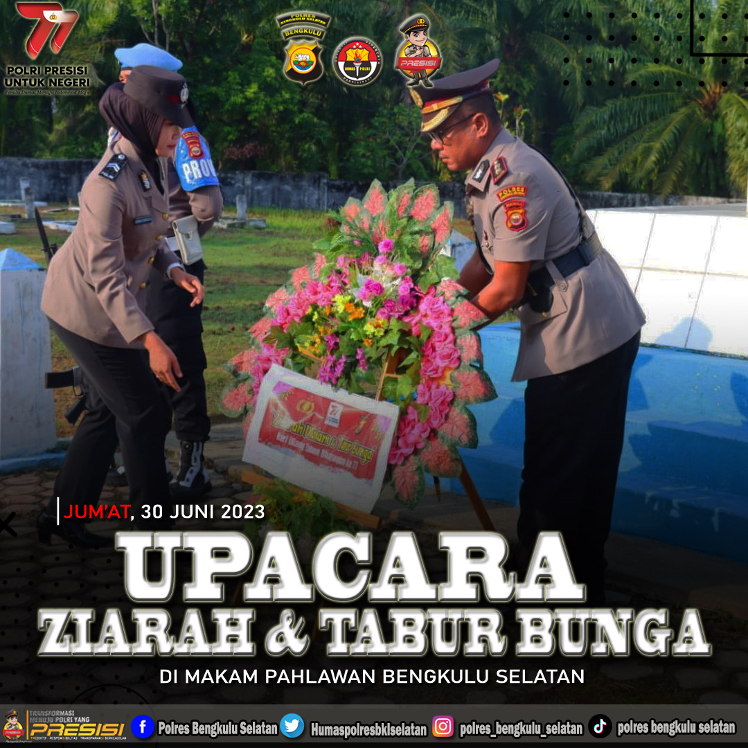Bengkulu Selatan - Sambut HUT Bhayangkara ke 77, Polres Bengkulu Selatan Polda Bengkulu, melaksanakan ziarah makam pahlawan, dan tabur bunga di Makam Pahlawan, Jumat (30/06/2023).