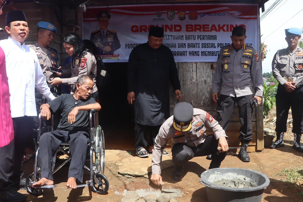 Bengkulu – Kapolda Bengkulu Irjen Pol. Mardiyono, S.I.K., M.Si., memimpin langsung kegiatan peletakan batu pertama (groundbreaking) program bedah rumah ke-68, Jumat (16/1/2026), di RT 10 RW 05 Kelurahan Pematang Gubernur, Kecamatan Muara Bangkahulu, Kota Bengkulu.