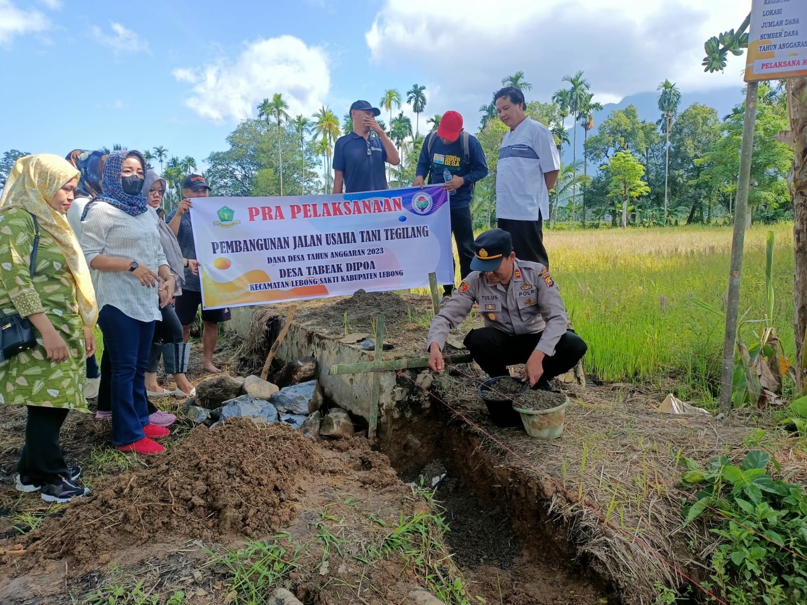 Lebong - Bhabinkamtibmas Polsek Lebong Tengah Polres Lebong Polda Bengkulu Bripka Helmi Syakbandi, bersama Kapolsek Lebong Tengah Iptu Tulus Wibowo, menghadiri kegiatan Pra Pelaksanaan Pembangunan Jalan Usaha Tani Tegilang Desa Tabeak Dipoa Kecamatan Lebong Sakti Kabupaten Lebong, yang bersumber dari Dana Desa (DD).