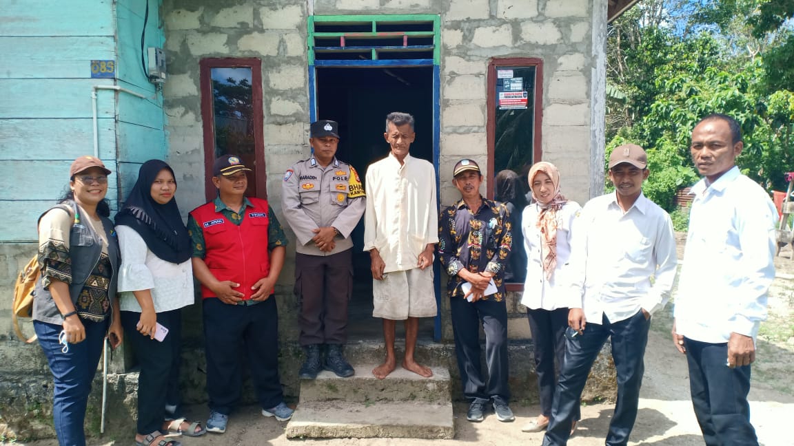 Bengkulu Utara – Bhabinkamtibmas Polsek Enggano Bripka Maraden, S.H., di memberikan pendampingan kepada Pemerintah Desa (Pemdes) Trans Kaana dalam melakukan pemasangan stiker dirumah warga penerima BLT-DD, Rabu (17/5/2023).