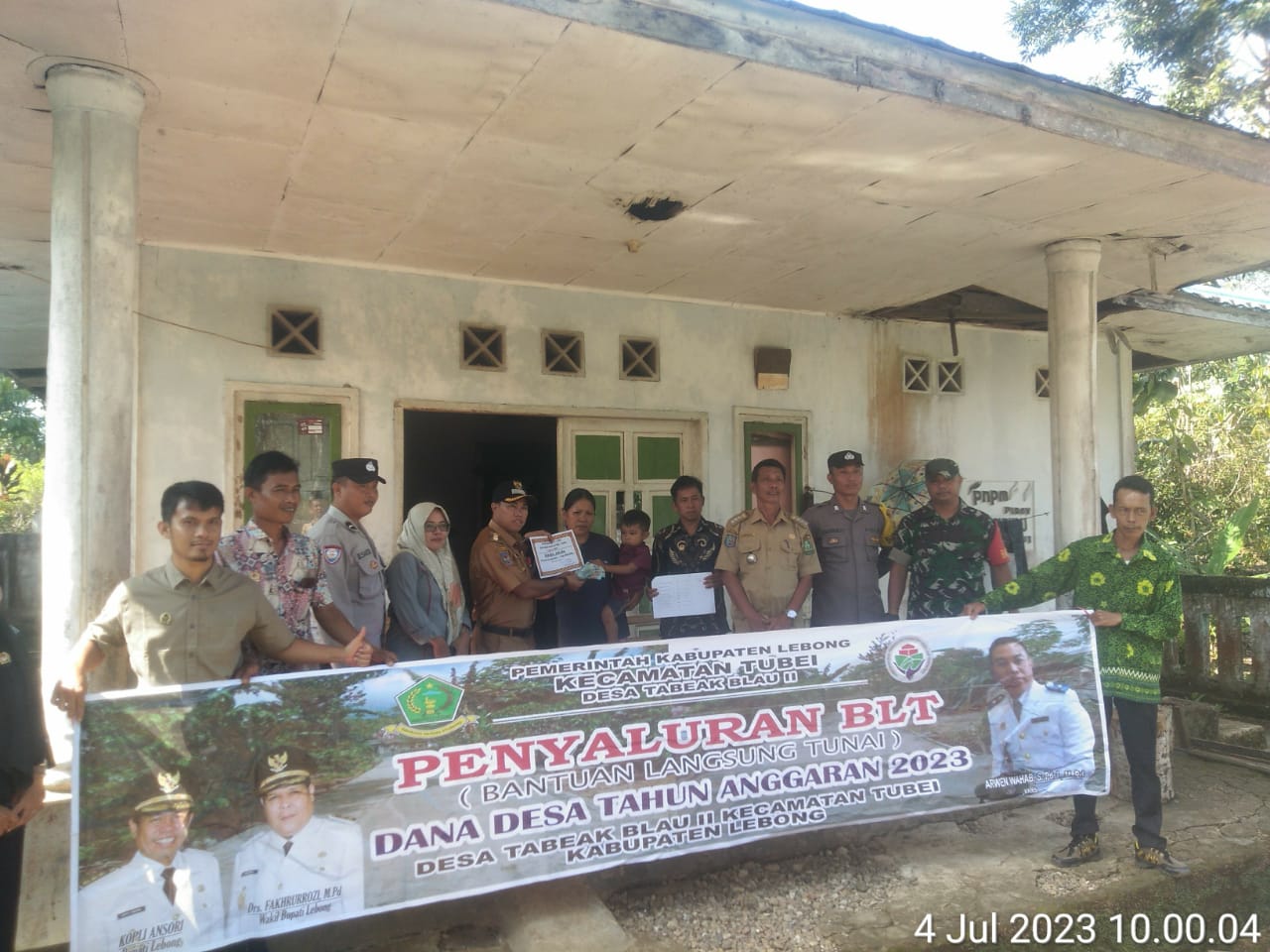 Lebong - Mendukung program pembangunan di desa binaannya, Bhabinkamtibmas Polsek Lebong Atas, Bripka Darmizi, menghadiri kegiatan penyaluran Bantuan Langsung Tunai Dana Desa (BLT-DD) di Desa Tabeak Blau II Kecamatan Tubei, Kabupaten Lebong, Selasa (4/7/2023).