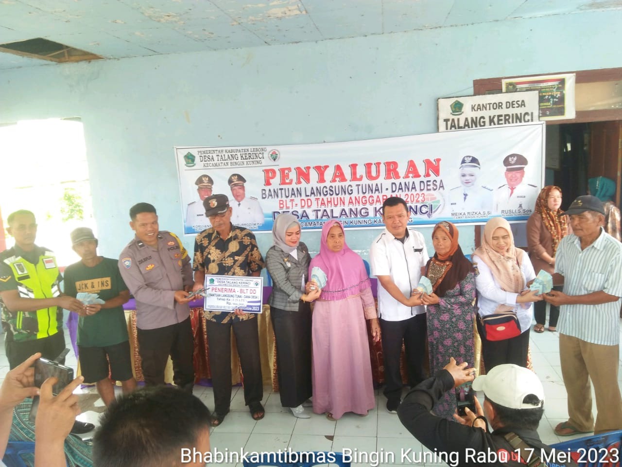 Lebong - Bhabinkamtibmas Polsek Lebong Selatan, Polres Lebong Polda Bengkulu Aipda Zulkifli, menghadiri kegiatan pembagian bantuan langsung tunai (BLT) dan pembangunan Titik nol jalan Usaha Tani di dusun 3 Desa Talang Kerinci Kecamatan Bingin Kuning Kabupaten Lebong Rabu, (17/05/2023).