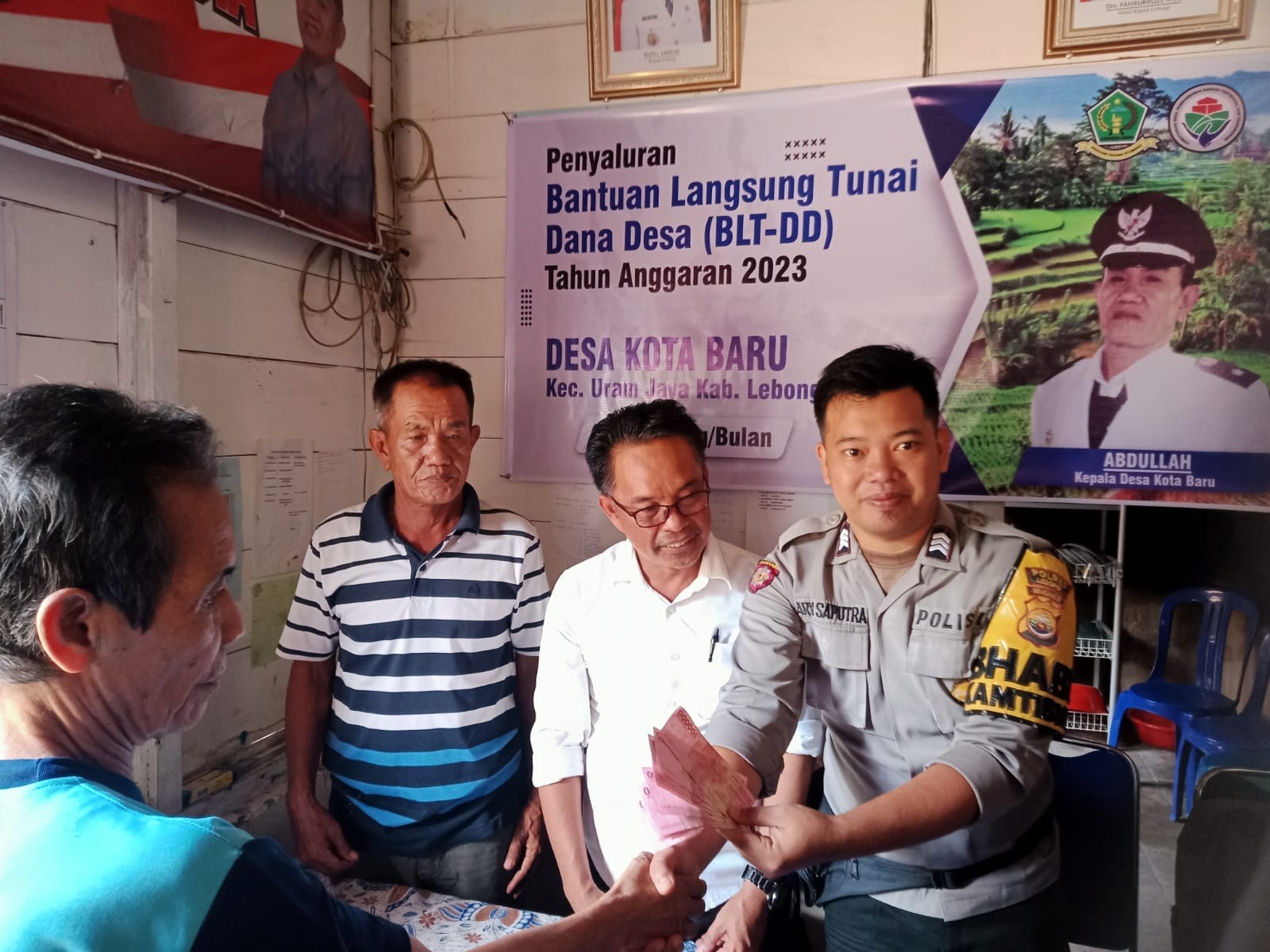 Lebong - Bhabinkamtibmas Polsek Lebong Utara, Polres Lebong Polda Bengkulu Brigpol Ary Saputra, menghadiri kegiatan pembagian bantuan langsung tunai (BLT) yang bersumber dari dana desa (DD) di balai Desa Kota Baru Kecamatan Uram Jaya Kabupaten Lebong, Rabu (17/05/2023).