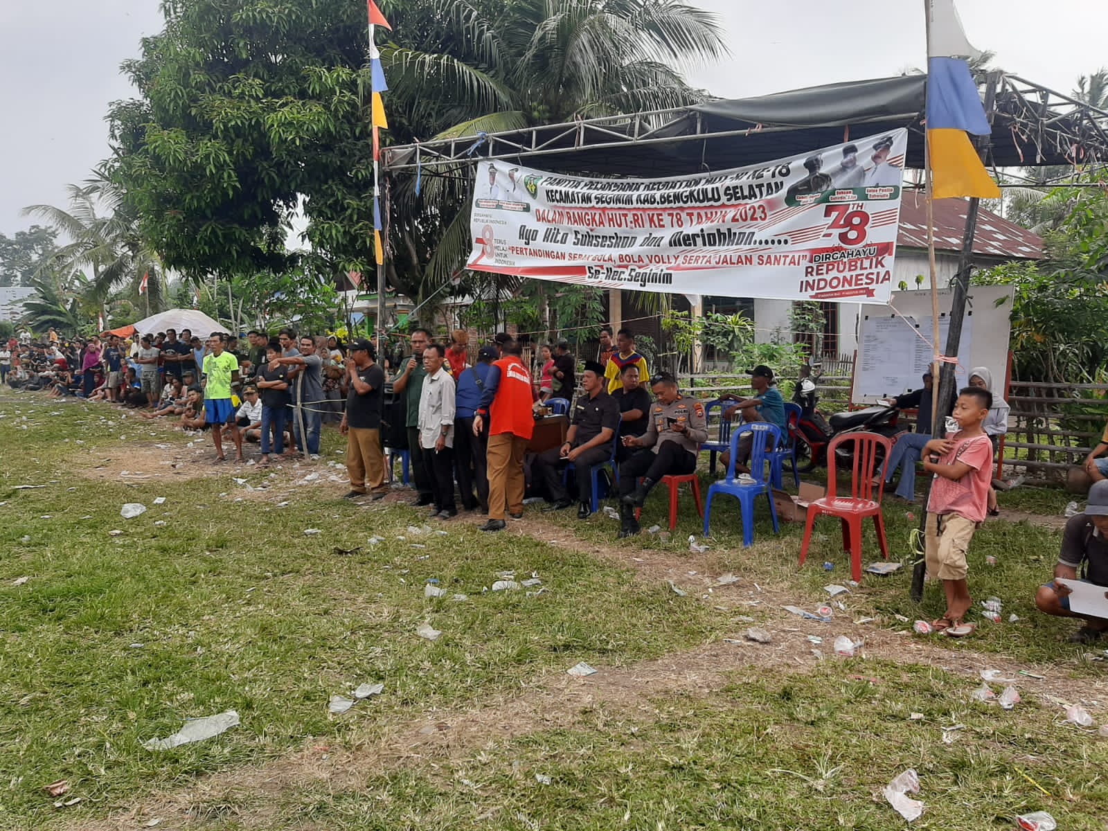 Dalam kesempatan tersebut Kapolsek Seginim bersama 4 Personil Polsek Seginim lainnya melaksanakan Pengamanan jalannya pertandingan Sepakbola dari awal sampai akhir pertandingan, menyampaikan pesan Kamtibmas serta menumbuhkan rasa persatuan dan persaudaraan menyambut hari kemerdekaan Republik Indonesia ke - 78.