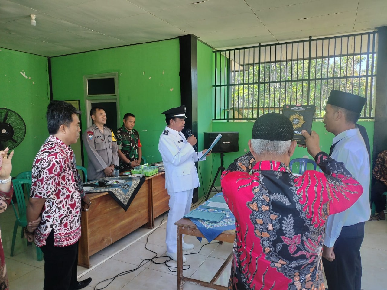 Bengkulu Utara - Kapolsek Lais Iptu Sukamto yang diwakili oleh Bhabinkamtibmas Aipda Fedi Aften menghadiri acara pelantikan perangkat desa Balam kec. Air Padang kab. Bengkulu Utara pada hari Kamis (28/12/2023) pagi.