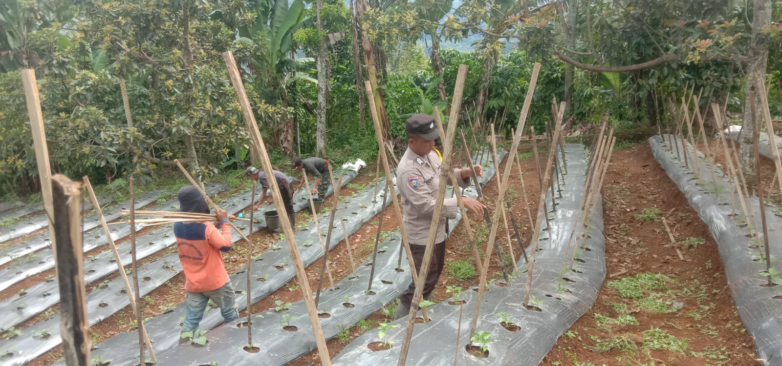 Lebong - Dalam rangka mendukung program ketahanan pangan, personel Bhabinkamtibmas Polsek Lebong Selatan Polres Lebong Polda Bengkulu, pada Jumat (14/2/2025), melaksanakan pengecekan tanaman sayuran di Desa Mangkurajo.