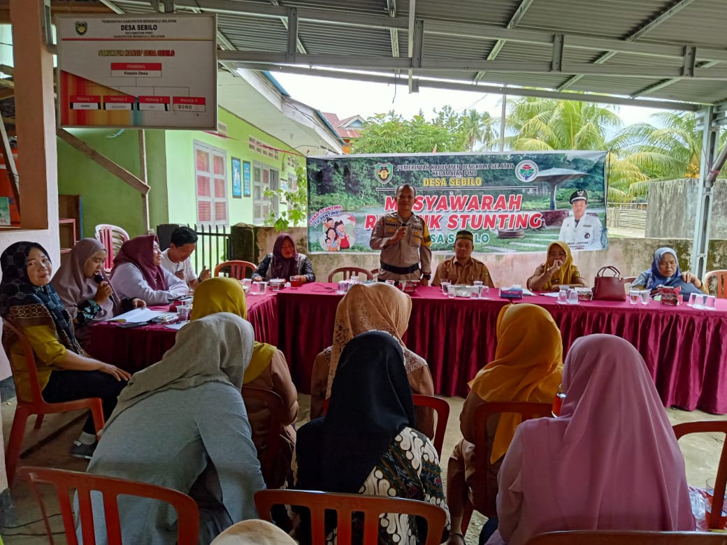 Bengkulu Selatan - Dalam upaya mendukung penurunan angka Stunting, Bhabinkamtibmas Polsek Pino Polres Bengkulu Selatan Polda Bengkulu Aiptu Robi Irawan S.H., menghadiri kegiatan Rembuk Stunting di kantor desa Sebilo kecamatan Pino Kabupaten Bengkulu Selatan, Senin (19/06/2023) pagi.