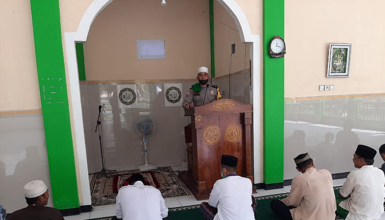 Dalam sholat Jum’at tersebut, selaku Khotib,Bhabinkamtibmas Aipda M.Harahap menyampaikan khotbah dengan materi menjaga Iman dan kerukunan umat agar kita selamat dunia dan akhirat.