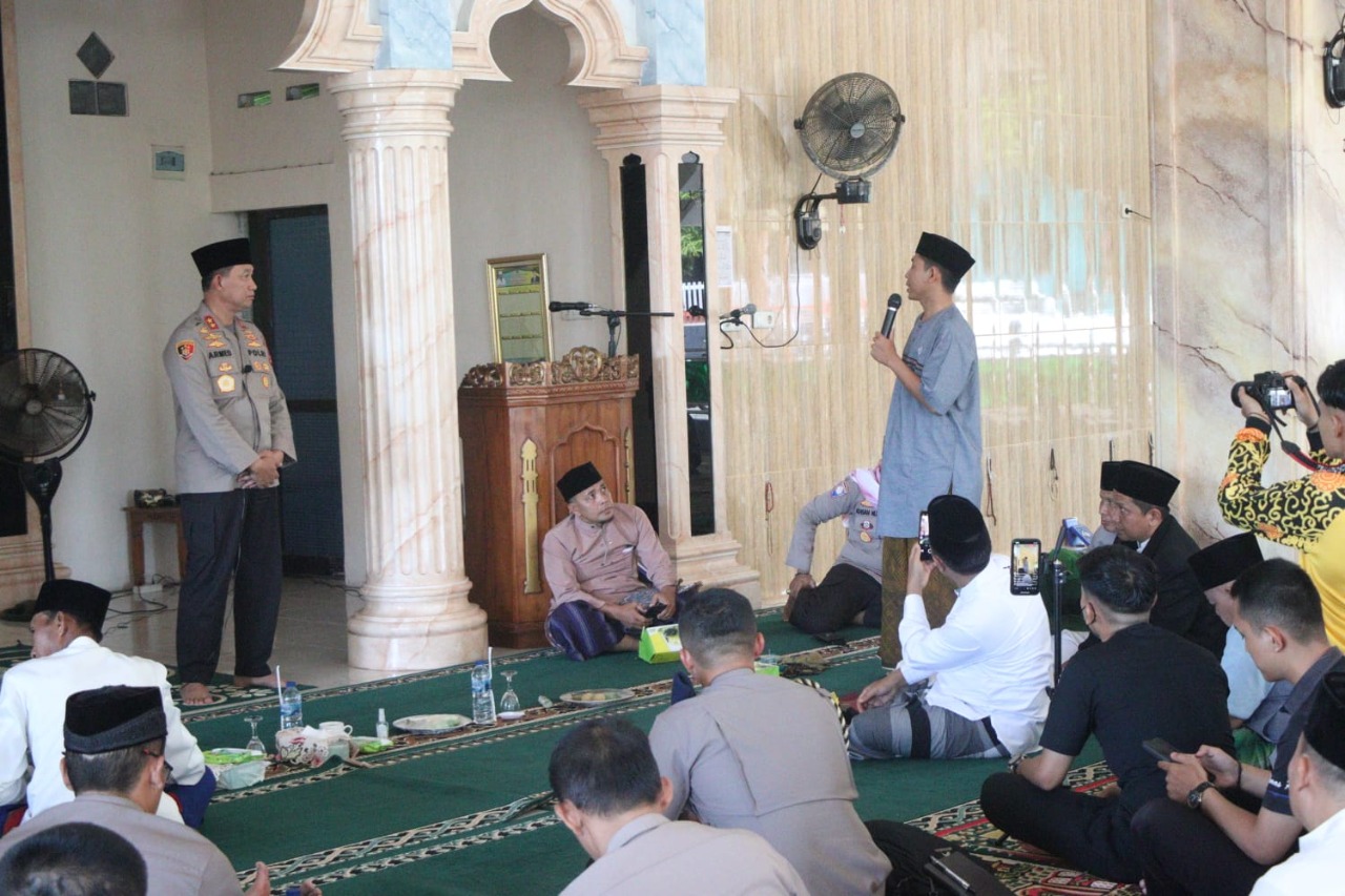 Dalam kegiatan yang berlangsung usai pelaksanaan shalat jumat berjamaah ini, Kapolda Bengkulu mengajak masyarakat untuk lebih berpartisipasi mendukung upaya kepolisian menjaga situasi kamtibmas yang tetap kondusif melalui sumbangsih berupa saran, kritik atau pertanyaan.