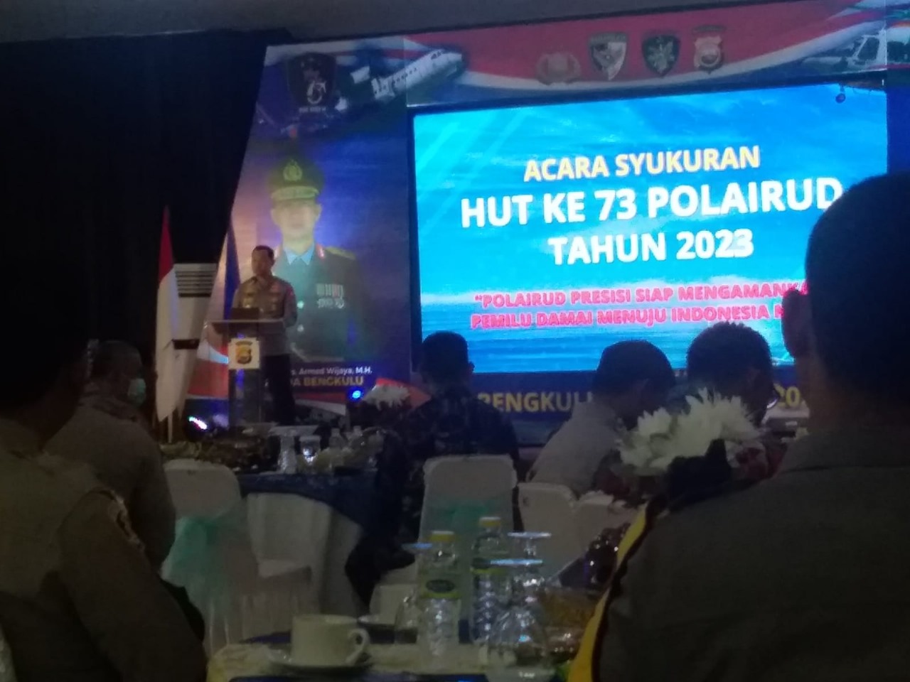 Kegiatan syukuran ini dipimpin langsung oleh Kapolda Bengkulu, Irjen Pol. Drs. Armed Wijaya, M.H., dalam sambutannya, Kapolda Bengkulu menyampaikan ucapan selamat ulang tahun ke-73 kepada seluruh keluarga besar Direktorat Kepolisian Perairan dan Udara. Ia mengharapkan agar Ditpolairud terus menjadi Bhayangkara penjaga Dirgantara dan Bahari Nusantara yang siap memberikan darma bhakti terbaik demi terwujudnya Indonesia emas pada tahun 2045.