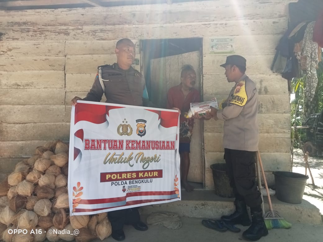 Kaur - Polsek Maje Polres Kaur Polda Bengkulu kembali menyalurkan bantuan sosial kepada warga kurang mampu dan atau yang membutuhkan, Jumat (7/4/2023).