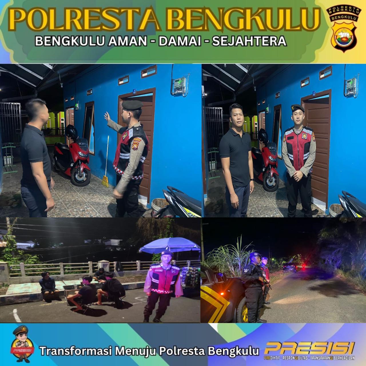 Selama patroli, personel Samapta Polresta Bengkulu menyambangi sejumlah tongkrongan pemuda yang sedang berkumpul di kedai kopi. Petugas mengimbau mereka untuk segera kembali ke rumah demi mencegah terjadinya tindak pidana begal yang sering terjadi pada malam hari. Patroli juga menyasar kawasan kostan, memberikan himbauan kepada penghuni kostan untuk menjaga keamanan kendaraan mereka. Petugas meminta mereka untuk segera memasukkan sepeda motor ke dalam kostan dan menambahkan kunci ganda sebagai upaya preventif.