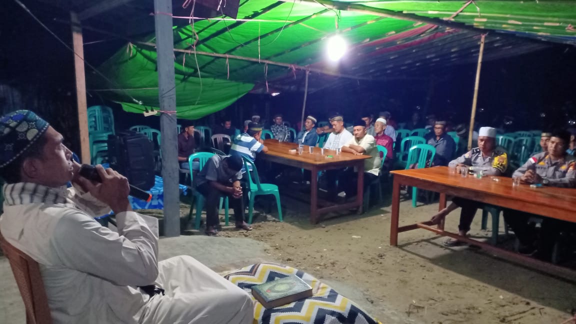 Bengkulu Utara – Kapolsek Enggano Polres Bengkulu Utara AKP Bayu Heri P, S.H., M.H., bersama Bhabinkamtibmas Aipda M.Harahap dan Bripka Maraden melaksanakan sambang duka, takziah Malam Ke 3 di rumah duka almarhum Almarhum Henrik Wijaya Dusun Pal 4 Desa Kaana, Kecamatan Enggano, Kabupaten Bengkulu Utara, Selasa (09/5/2023).