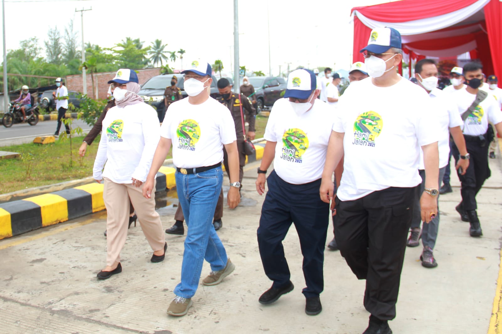 Peringatan Hari Jalan Tahun 2021 yang juga dihadiri FKPD Provinsi Bengkulu ini dilakukan peninjauan Pemeliharaan Jembatan Pulau Baai I A Bengkulu di samping juga pembagian doorprize oleh Gubernur Rohidin dan rombongan.