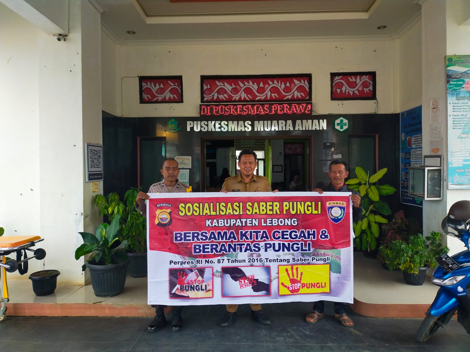 Lebong - Personel Polsek Lebong Utara Polres Lebong Polda Bengkulu, melaksanakan kegiatan sosialisasi Saber Pungli di Puskesmas Pasar Muara Aman Kecamatan Lebong Utara, Kabupaten Lebong, Senin (11/12/2023).