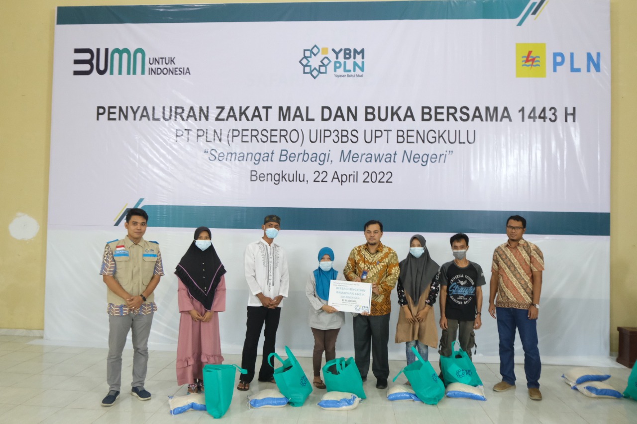 Penyaluran Zakat Maal dari Yayasan Baitul Maal (YBM) PLN UPT Bengkulu dengan tema 'Semangat Berbagi, Merawat Negeri' diberikan kepada penerima manfaat diantaranya kaum dhu'afa, anak yatim, guru ngaji serta muslimah tangguh.