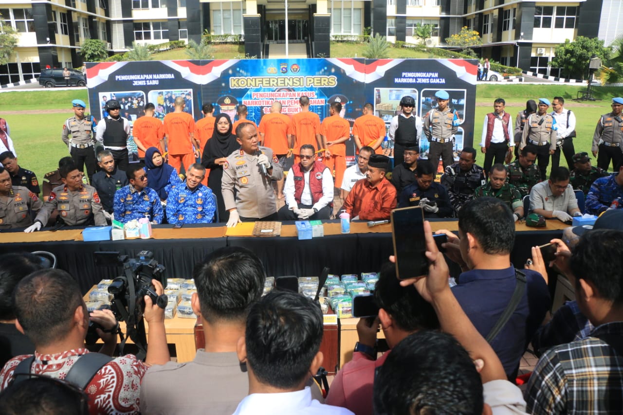 Padang – Kepolisian Daerah (Polda) Sumatera Barat berhasil mengungkap 37 kasus peredaran narkotika sepanjang Juli hingga September 2025. Dalam pengungkapan ini, polisi menangkap 56 tersangka dan menyita puluhan kilogram narkoba berbagai jenis.