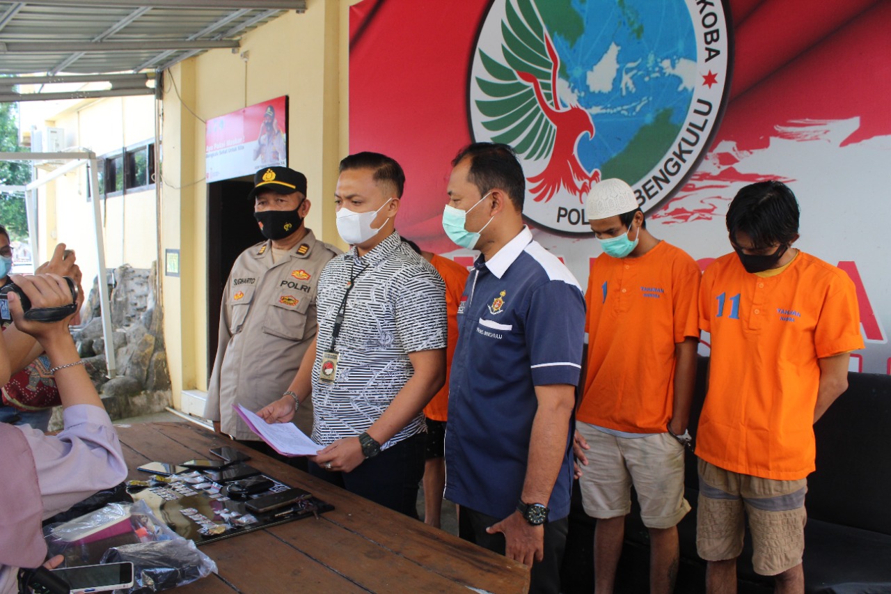 Kapolres Bengkulu AKBP Andy Dady Nurcahyo Widodo S.IK melalui KBO Sat Res Narkoba Ipda Albeth Salomo Sinulaki Sembiring S.IK mengatakan penyalahgunaan narkotika Jenis sabu terdapat 5 Kasus dengan terduga pelaku yang diamankan berjumlah 5 orang Laki-Laki dan 1 orang Perempuan.