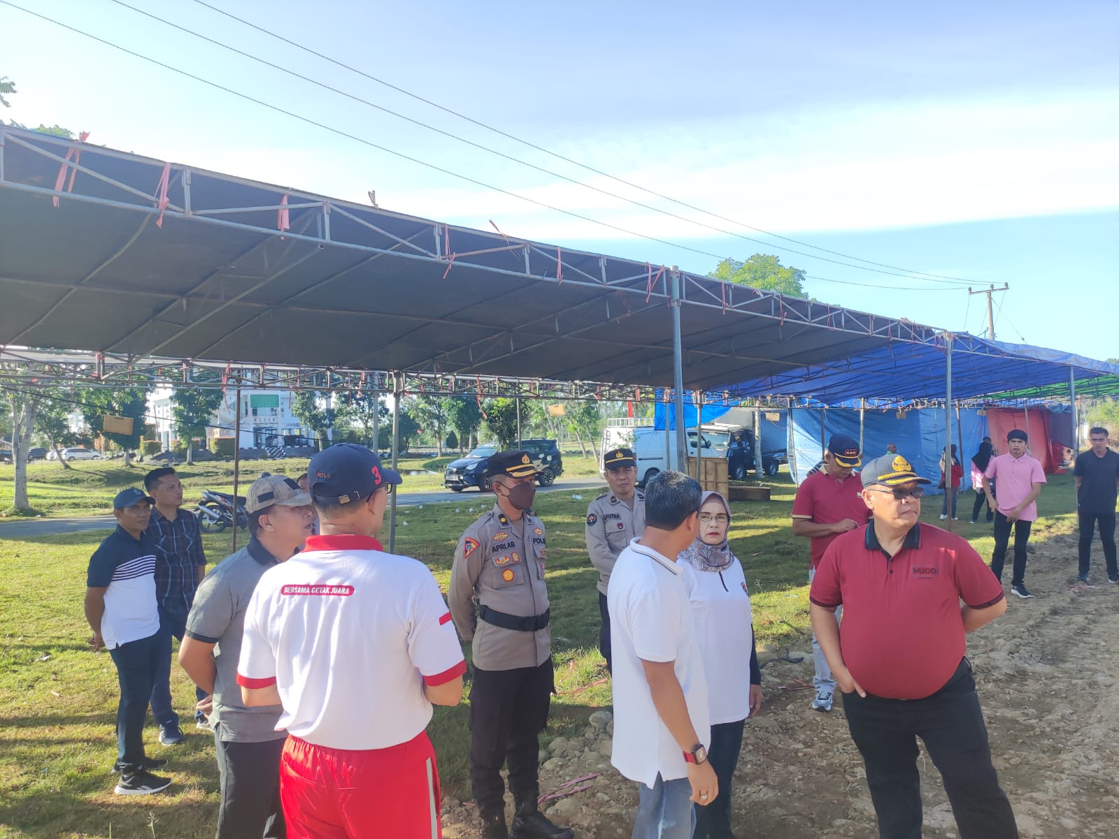 Mukomuko - Kabag Ops Polres Mukomuko bersama Kasat Samapta dan Kasie Humas Polres Mukomuko bersama Wakil Bupati Mukomuko dan OPD terkait tinjau langsung lokasi Stand Pameran dan Lokasi Parkiran Dalam Rangka Hut Kabupaten Mukomuko Ke-20 Tahun, di lapangan MTQ, dan perkantoran daerah Kabupaten Mukomuko, Jumat (17/02/2023).