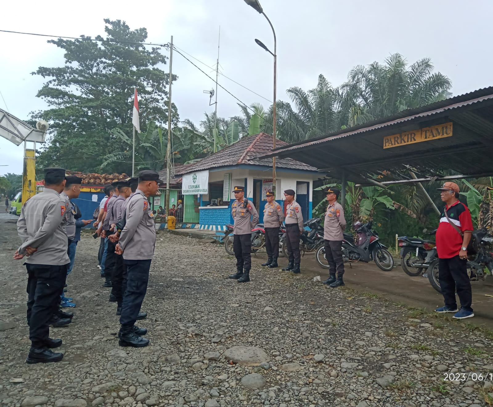 Bengkulu Utara – Personel gabungan Polsek Padang Jaya dan Polres Bengkulu Utara laksanakan pengamanan aksi unjuk rasa oleh Sopir TBS yang berasal Dari Desa Lubuk Banyau Kecamatan Padang Jaya di depan timbangan Pabrik PT SIL Desa Lubuk Banyau Kecamatan Padang Jaya, Kamis (15/06/2023).