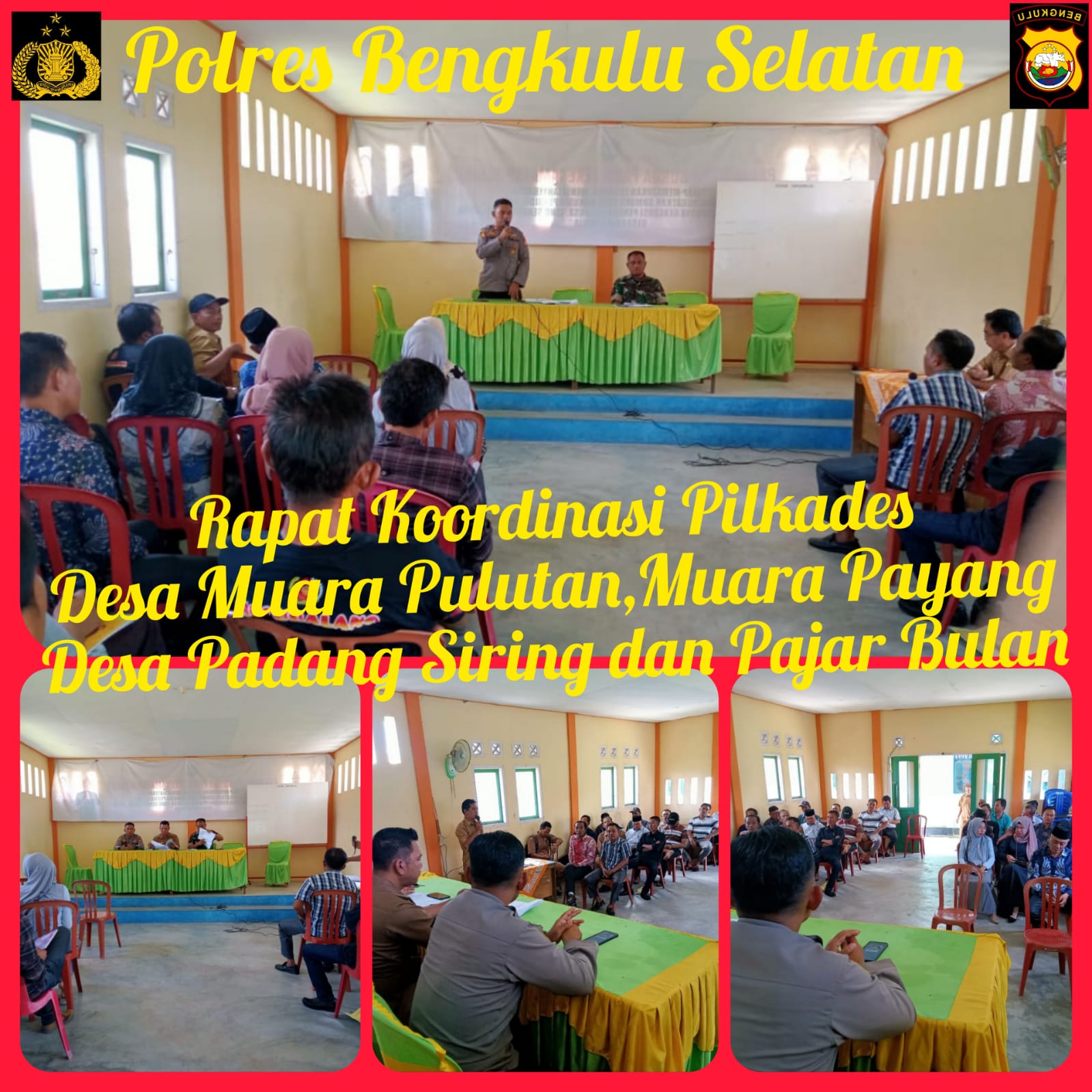 Sosialisasi Pilkades Damai ini di ikuti oleh 4 desa terdiri dari 10 calon kades yaitu Desa Muara Pulutan 2 calon, Desa Muara Payang 2 calon, Desa Pajar Bulan 2 calon2 dan Desa Padang Siring 4 calon.