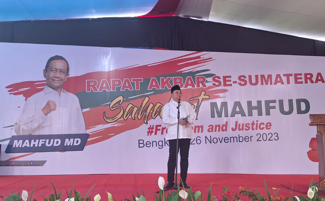 "Ini produk unggul, bersih berintegritas dan punya sisi religiusitas. Kalau ada sahabat kita yang tengah berjuang, maka kita harus membantu semaksimal mungkin. Saya tidak akan mengajak memilih, karena sudah pasti sahabat mendukung perjuangan sahabat," kata Ridwan Mukti saat Rapat Akbar Sahabat Mahfud se-Sumatera di Jalan Hibrida XV, Nomor 059, Gading Cempaka, Kota Bengkulu, Minggu (26/11/2023) siang.