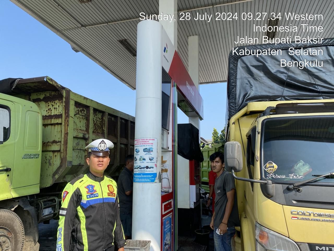 Bengkulu Selatan -Sat Lantas Polres Bengkulu Selatan Polda Bengkulu, melaksanakan giat pengawasan pendistribusian dan pengisian BBM serta pengaturan arus lalulintas dimana dianggap berpotensi terjadinya lakalantas di kabupaten bengkulu selatan terutama pada jam jam sibuk aktifitas masyarakat, pada hari Minggu (28/07/24).